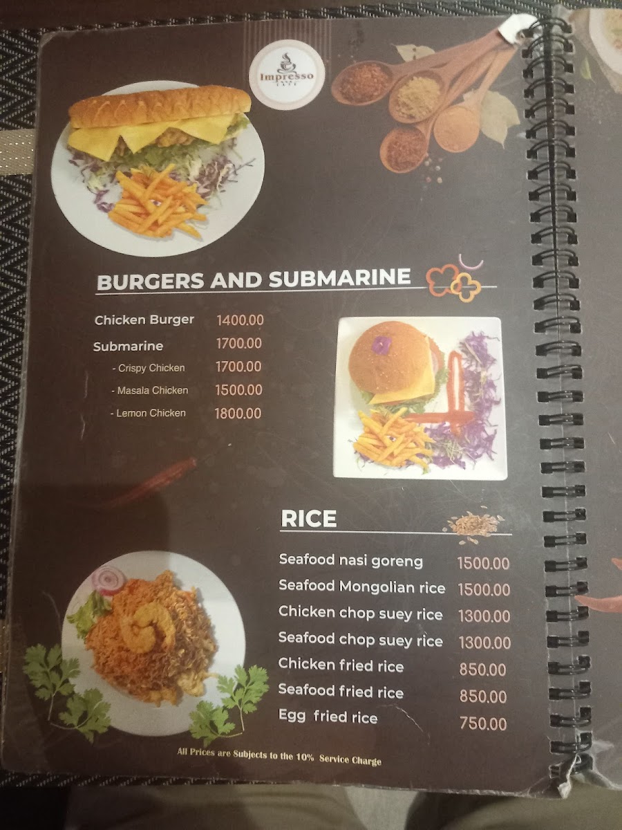 Welcome to Impresso Cafe & Restaurant, your next culinary destination in Gampaha, Sri Lanka. Nestled on Main Street, this charming cafe offers a delightful blend of cozy ambiance and exquisite cuisine. Guests rave about the Impresso Special Kottu and Mongolia rice, both celebrated for their rich flavors and generous portions. The menu features a diverse range of options, from hearty breakfasts to delectable lunch and dinner choices, ensuring there’s something for everyone.